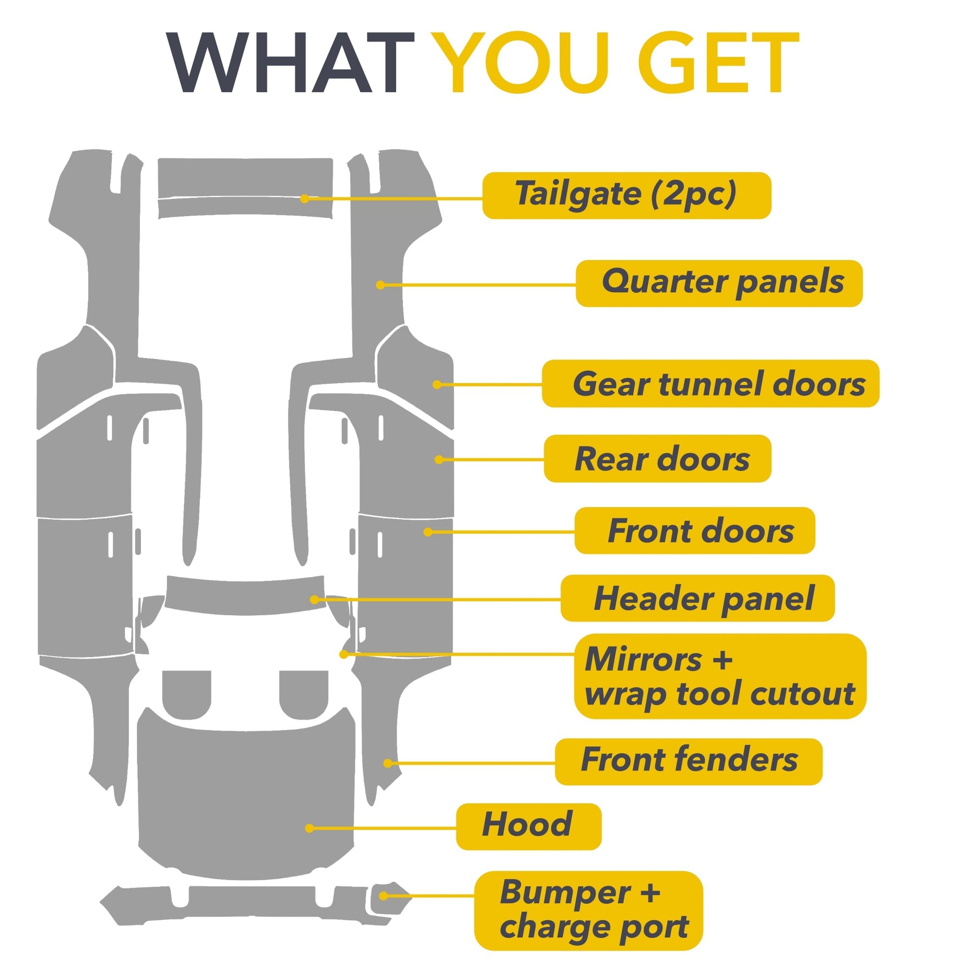 🔍 Beyond just the basics, the full wrap package includes extra panels. These cover vulnerable areas like lights, door entries, pillars, and headers. It's like getting an extended warranty for your car's exterior.
